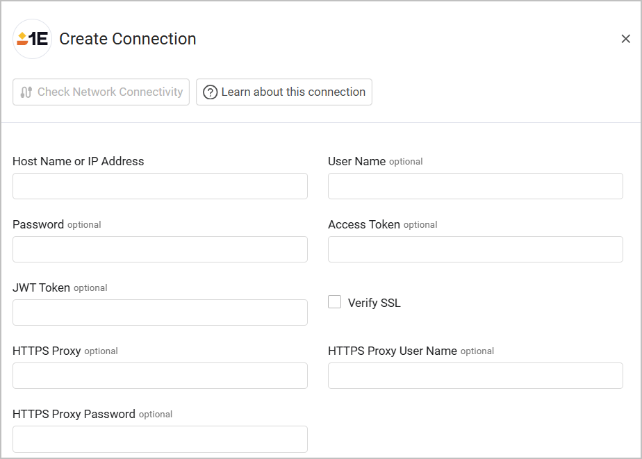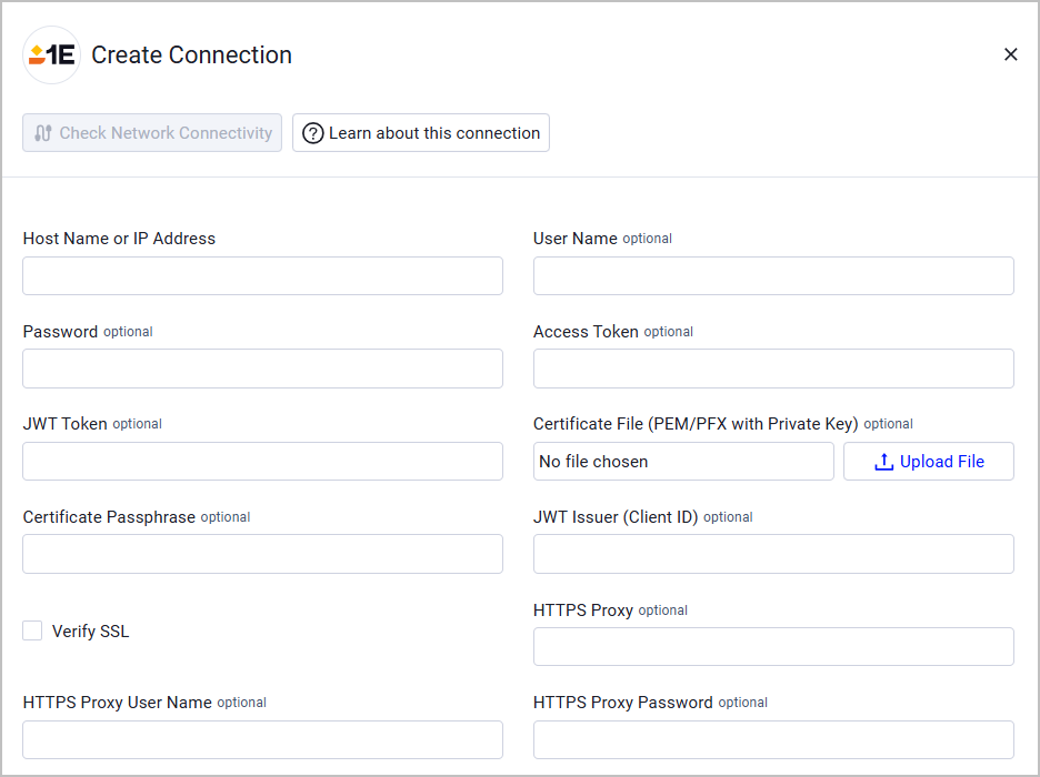 - Host Name or IP Address - The hostname or IP address of the 1E server.