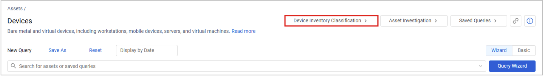 The left navigation panel in the Device Inventory Classification page details the categories applying to your devices: