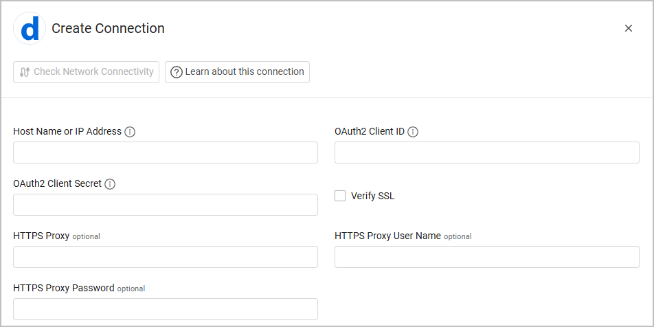 To learn more about common adapter connection parameters and buttons, see Adding a New Adapter Connection.