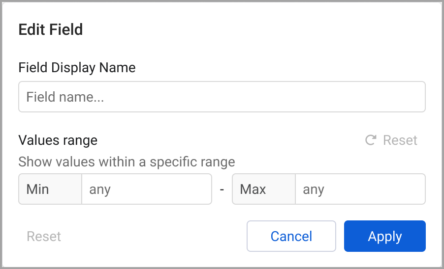 Value range - Set minimum and maximum values. Only values that fall within the range are displayed.
