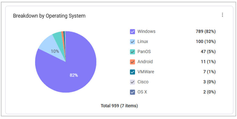 For example, the Publicly-Exposed Devices by Operating System chart might reveal operating systems exposed to the internet that shouldn't be exposed at all.