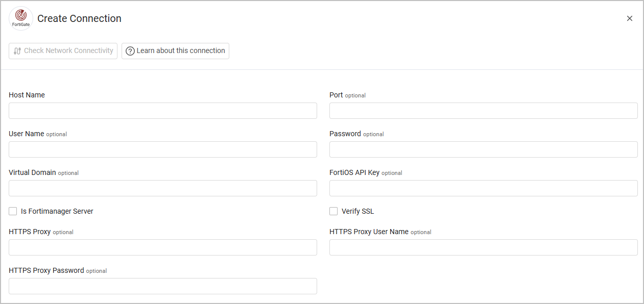 - Host Name - The hostname or IP address of the Fortinet FortiGate server.