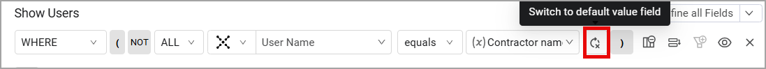 To switch back to a default value field (not a variable), click the Refresh icon on the right side of the Value field.