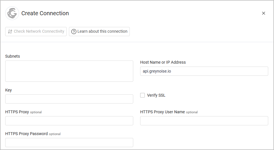 Host Name or IP Address - The hostname or IP address of the Greynoise server.