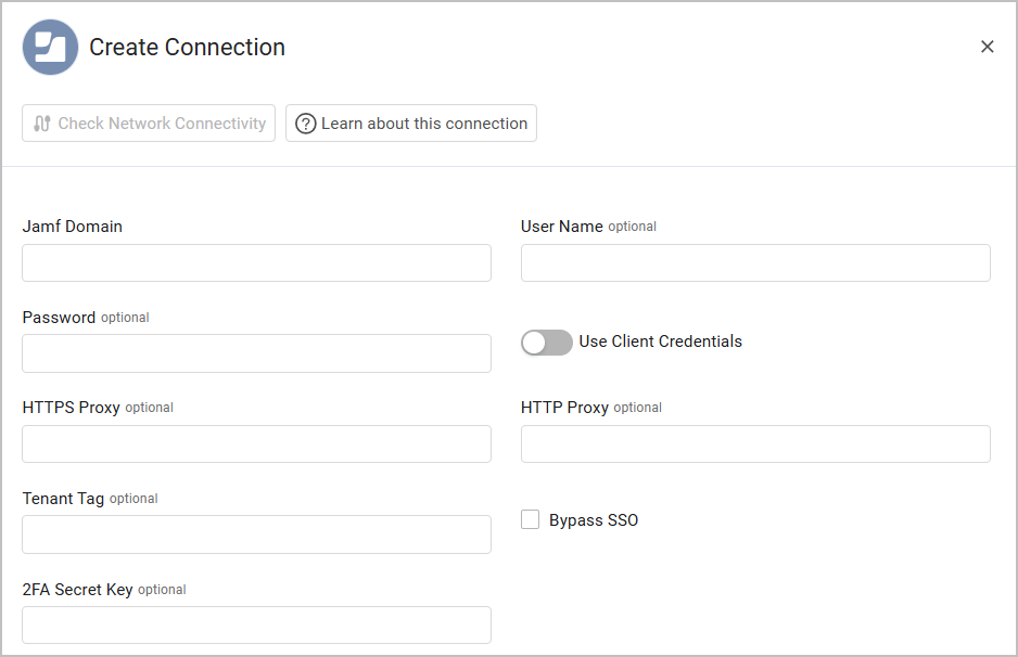- Use pro API - Select this option to use JAMF Pro API. Clear this option to use the JAMF Classic API. Note that On-prem Jamf servers require the Pro API.