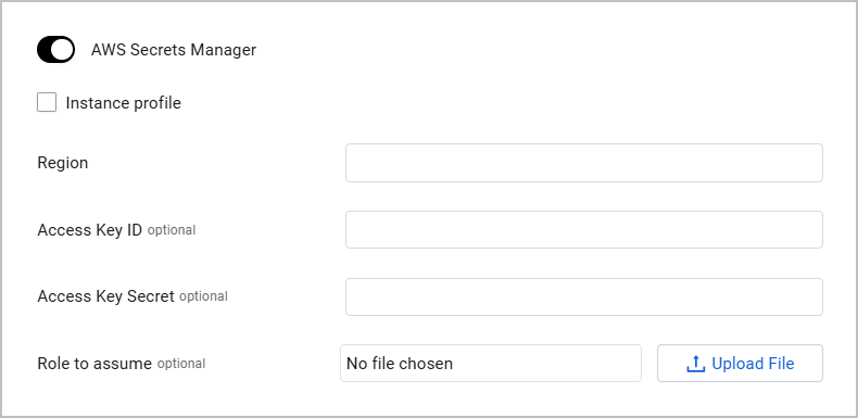 For more details about AWS Secrets Manager configuration and guidelines, see AWS Secrets Manager Integration.