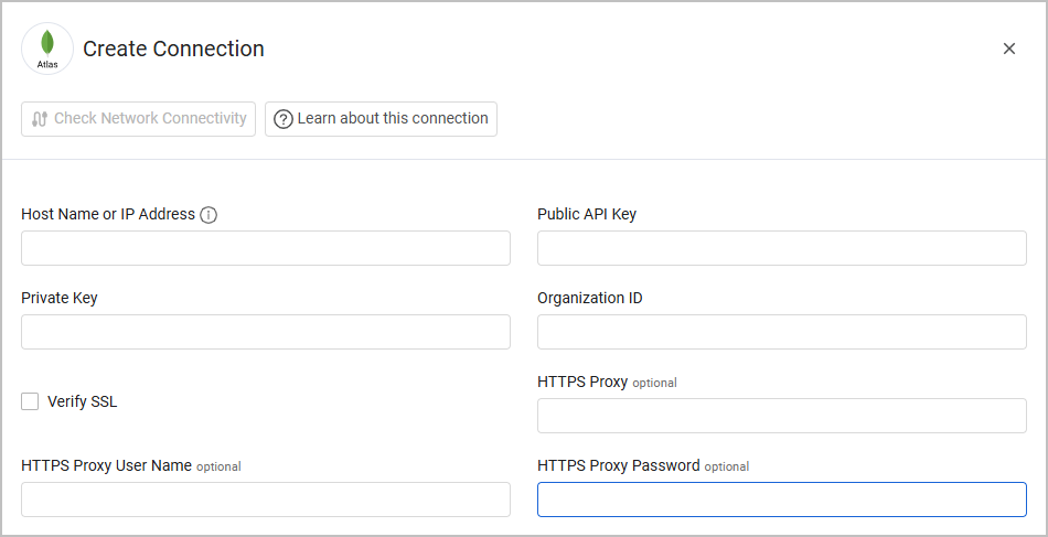 Host Name or IP Address - The hostname or IP address of the MongoDB Atlas Administration server.