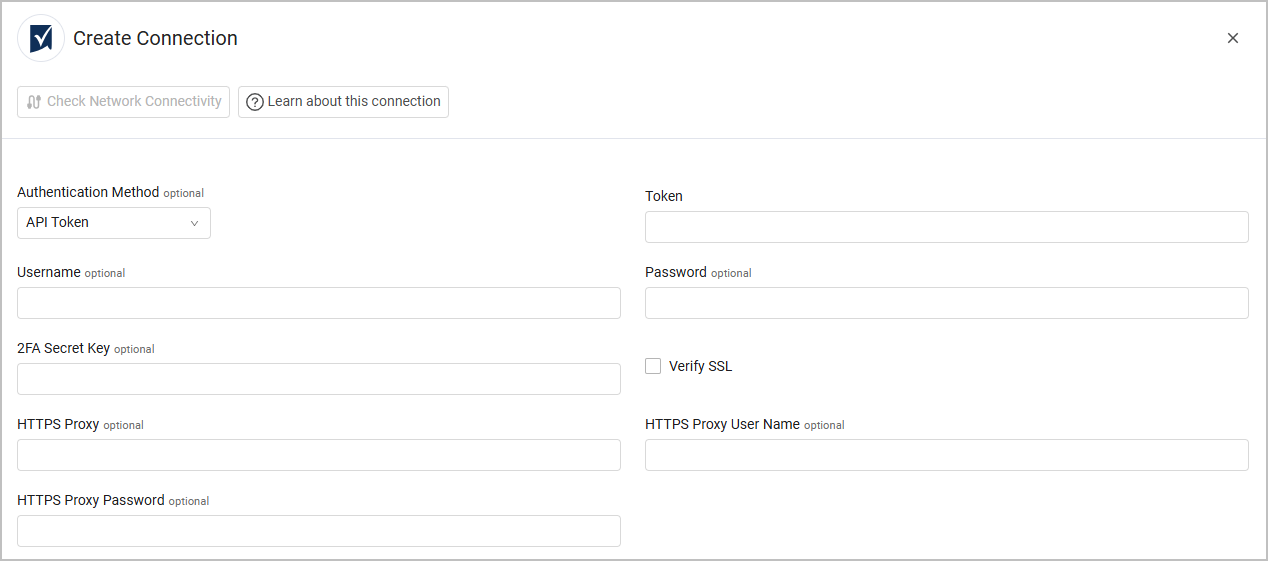 Authentication Method - Select API Token or OAuth2. Select the relevant tab below to view the required fields for each method.