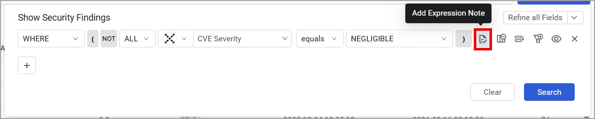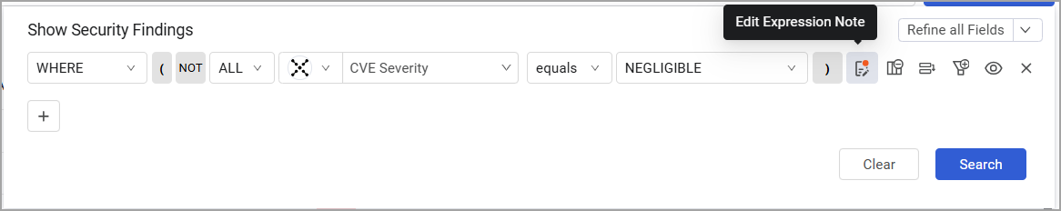 On the Aggregated Security Findings and Software pages, the Query Wizard is multi-level to provide vulnerability and software contextualization and help inform prioritization. See Creating Queries on Vulnerabilities and Creating Queries on Software for more information.