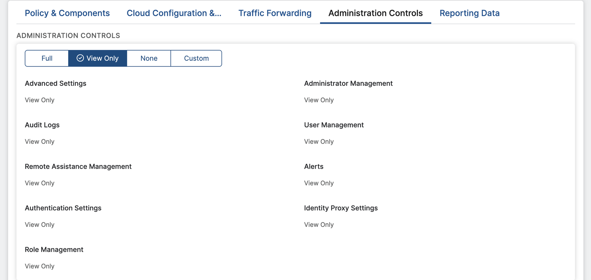 In Zscaler, under the Edit Administrator Role section, select the Administration Controls tab.