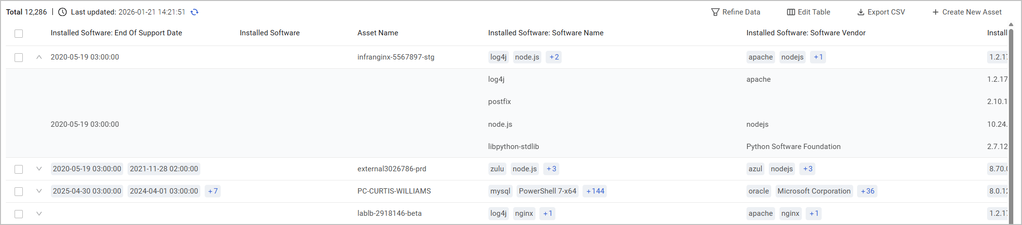 For example - On the Devices page, apply the Software Versions view, expanded by the Installed Software complex field: