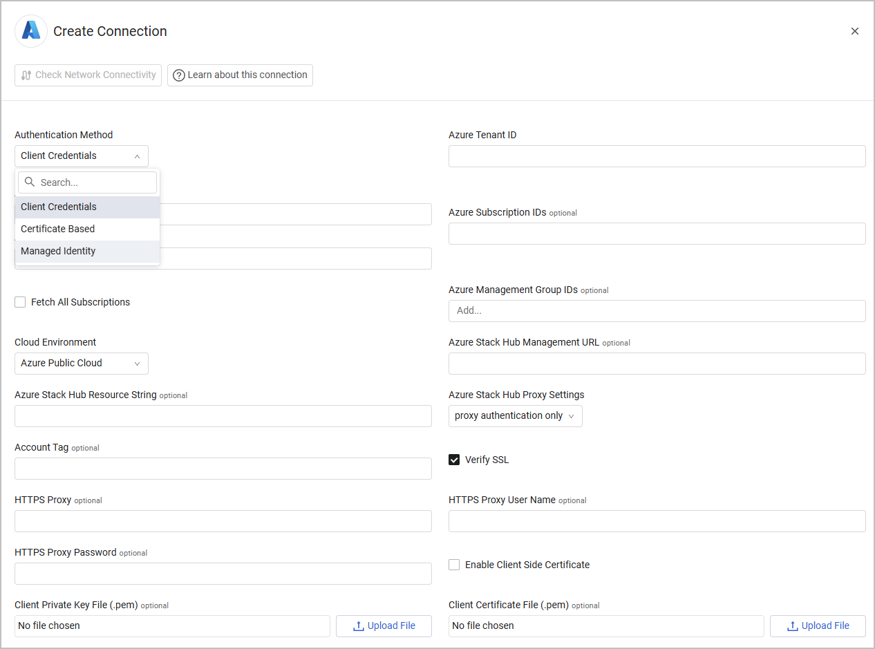 - HTTPS Proxy – A proxy to use when connecting to the selected Azure cloud environment.