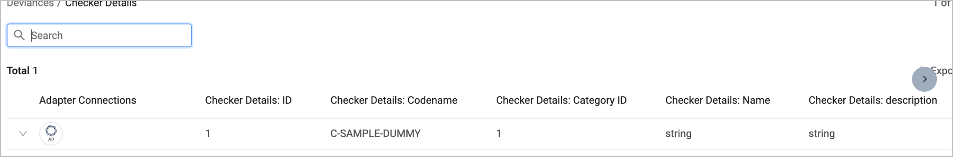 Enrich Deviances with Checkers - Enable to enrich Deviances with Checker details (issue type). Here is some sample data that can be fetched when this is enabled: